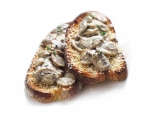 Untul se incalzeste intr-o tigaie, peste care se vor pune ciupercile taiate in jumatati, cand ciupercile incep sa se inmoaie. Se adauga si ceapa taiata marunt, se condimenteaza cu cimbru sare si piper, apoi se lasa la foc mic, pana cand ceapa devine translucida. Cand se va evapora apa lasata de ciuperci si ceapa, se va adauga si smantana in tigaie si se va fierbe pana cand se va obtine o consistenta asemanatoare unei creme. Feliile de paine se vor condimenta cu sare si piper, se intinde cu o lingura, branza rasa pe fiecare dintre felii si se vor pune pe un gril pana devin crocante. Cand sunt gata, feliile se pun pe o farfurie, si se acopera cu sosul preparat si un strop de ulei de masline. Se servesc imediat.
