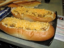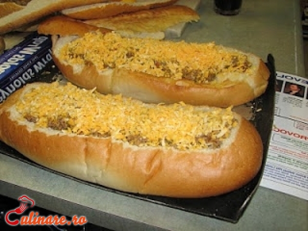 Painea se taie pe lungime si se curata de miez, formand astfel doua barcute. Legumele se spala, se taie in felii si se calesc in putin ulei, condimentate cu sare si piper. Cele doua barcute de paine se umplu cu legumele calite, peste ele se pun si ouale batute, iar deasupra se rade cascaval cat sa acopere totul. Se da tava la cuptor timp de jumatate de ora, iar cand au devenit rumene la suprafata, se scot si se servesc. Painea umpluta se serveste calda, dar este delicioasa si rece.