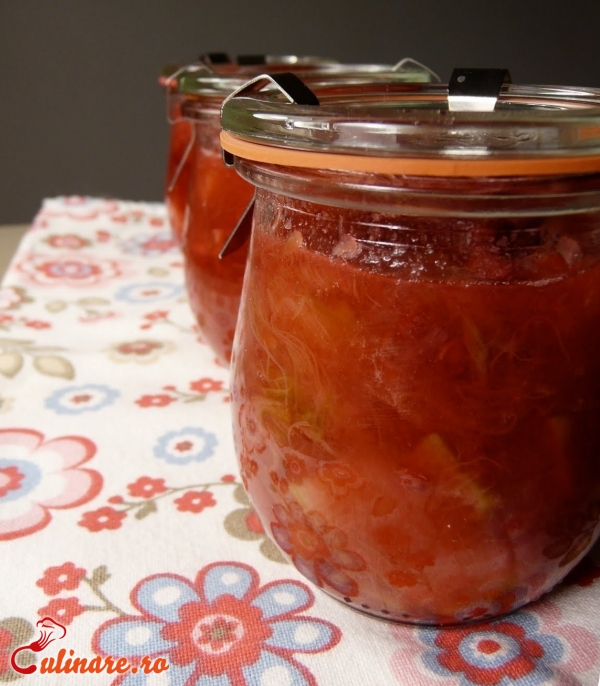 6 cani de rubarba tocata 1 cana zahar 1 lingurita sare coaja de lamaie coaja de portocala 2 cani vin alb
