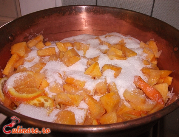 2 kg zahar 2 lamai 1 portocala 2 kg pulpa de dovleac 500 ml apa
