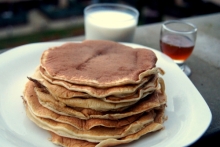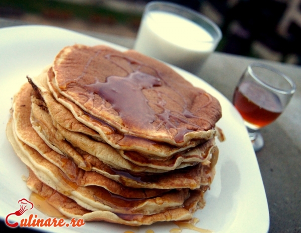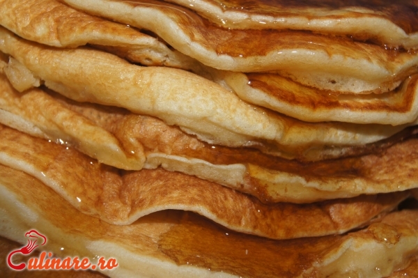 Untul de topeste in cuptorul cu microunde. Intr-un castron se pun ouale, laptele, untul, esenta de vanilie si zaharul, dupa care se bat ingredientele. Adaugati faina, impreuna cu drojdie si un varf de cutit de sare. Se ametesca bine pana se omogenizeaza. Amestecul se lasa sa stea timp de 20 minute. Se pune o tigaie la foc mare si se adauga o lingura de aluat in centru, si vom vedea cum se extinde si ia forma rotuinjita. Se tine pana se rumeneste, dupa care se intorce pe celalta parte. Clatite americane (pancakes) sunt acele clatite pe care le vedem in toate filmele si serialele pe care americanii le mananca la micul dejun. Clatitele americane se servesc cu sirop sau sos de ciocolata, cu finetti, cu miere, frisca sau gem.