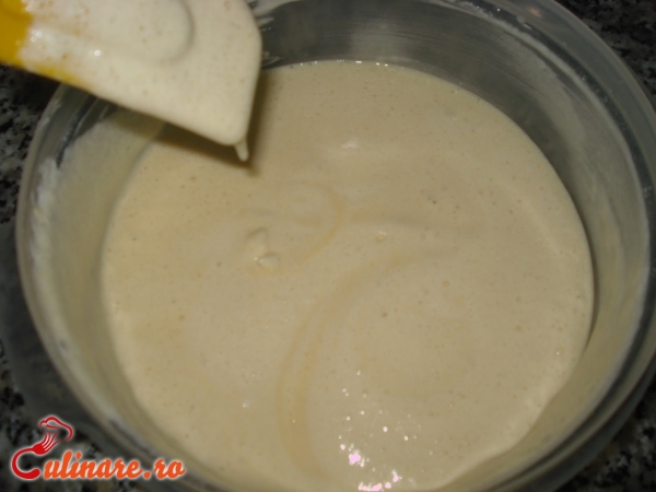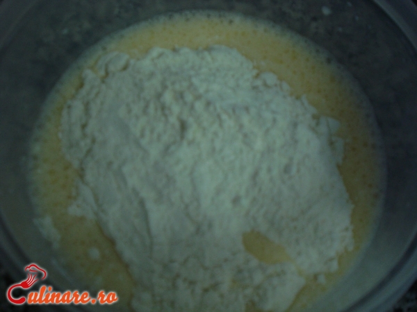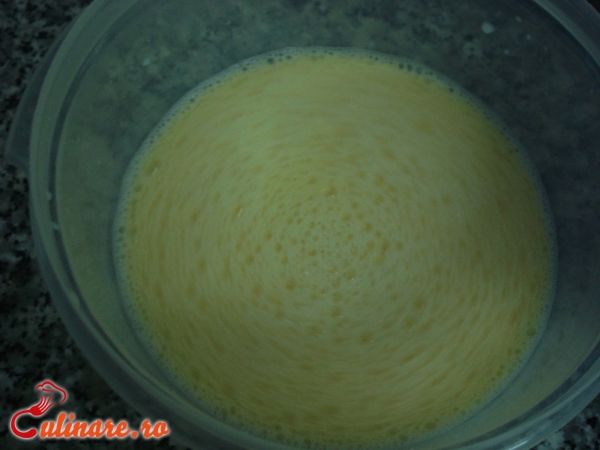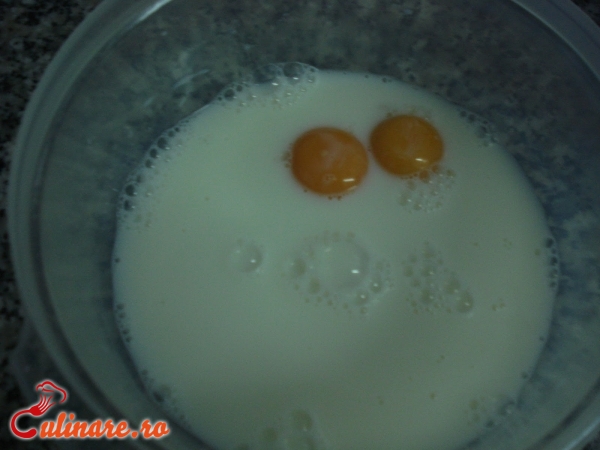 Intr-un bol se sparg cele 3 oua, se bat bine, apoi se adauga laptele si se presara faina, in ploaie, amestecand mereu, ... (mai mult)