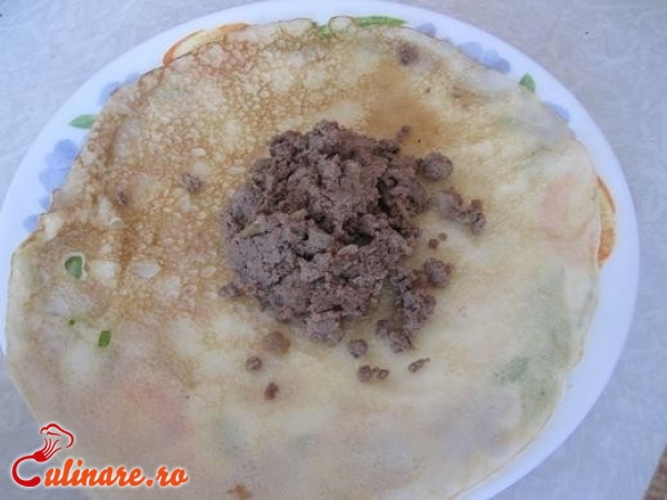 Pregatim aluatul de clatite amestecand ouale cu putina sare, laptele si faina. Din acesta compozitie vom rumeni clatitele in tigaie. Dupa ce am terminat de prajit clatitele, preparam umplutura din ficateii ce au fost putin opariti in apa cu sare si tocati marunt. Peste ei se adauga ceapa ce a fost si se tocata si calita. Amestecul se paseaza cu ajutorul unui blender, rezultand o crema de ficat, condimentam cu sare si piper si umplem clatitele. Clatitele cu ficat se pun intr-o tava si se dau la cuptorul incins pentru un sfert de ora. Se servesc calde.