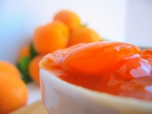 Caisele se pun intr-un vas, se toarna sucul de portocale si se pune sa fiarba 15 minute pe foc mic. Se lasa sa se raceasca 15 minute. Se mixeaza pana devine un amestec omogen. Se adauga zeama de lamaie, mierea si atata apa rece cat sa masoare 600 ml. Gelatina se pune in putina apa rece sa se inmoaie si dupa 2-3 minute se dizolva in apa fierbinte. Se toarna gelatina in amestecul de caise, omogenizandu-se bine. Se repartizeaza in patru forme si se pune la rece sa se intareasca. Se poate orna cu frisca sau cu crema de branza de vaci cu iaurt.