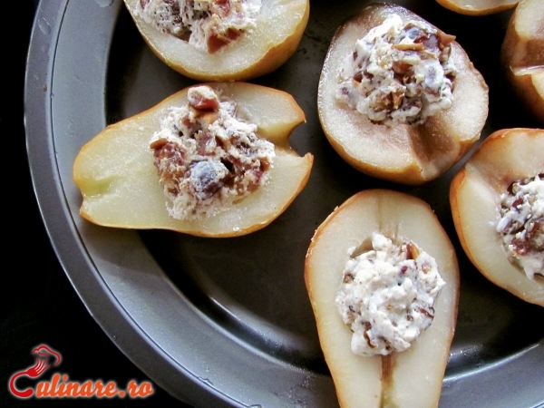 10 pere 250 g crema branza 150 g dulceata de afine 40 g zahar 20 g zahar vanilat