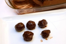 Ciocolata se rupe bucati. Intr-un vas se pun ciocolata, laptele si frisca la foc mic, amestecand din cand in cand pana ... (mai mult)