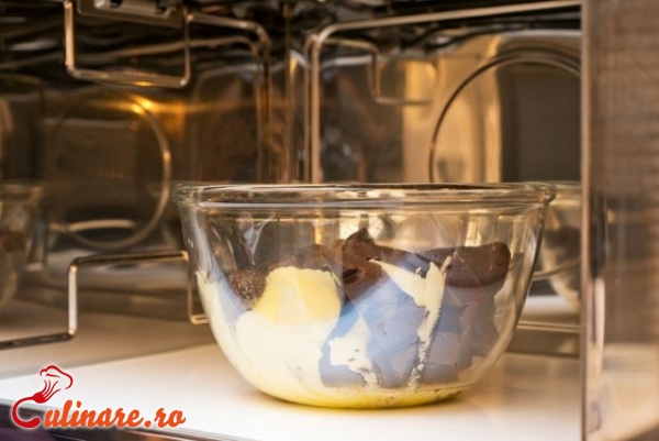 Se sfaramana ciocolata si se pune intr-o cratita impreuna cu apa. La foc mic, amestecati pana cand ciocolata este ... (mai mult)