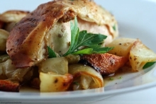 1 piept de gasca 4 cartofi ulei boia piper sare