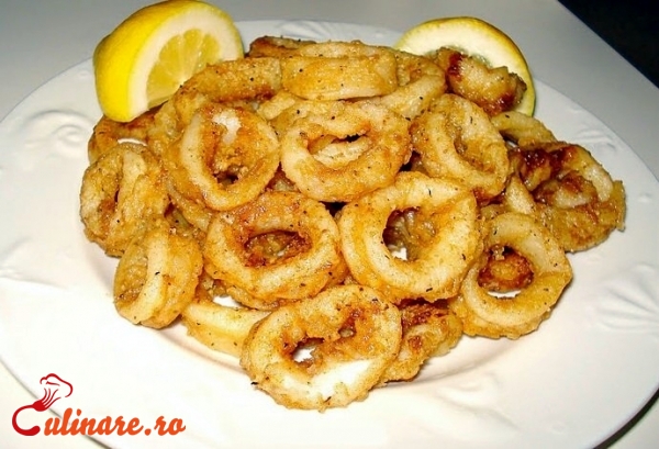 150 g calamar 1/2 l lapte ulei de masline 2 oua 1/2 ceasca de bere 3 linguri faina o lamaie sare