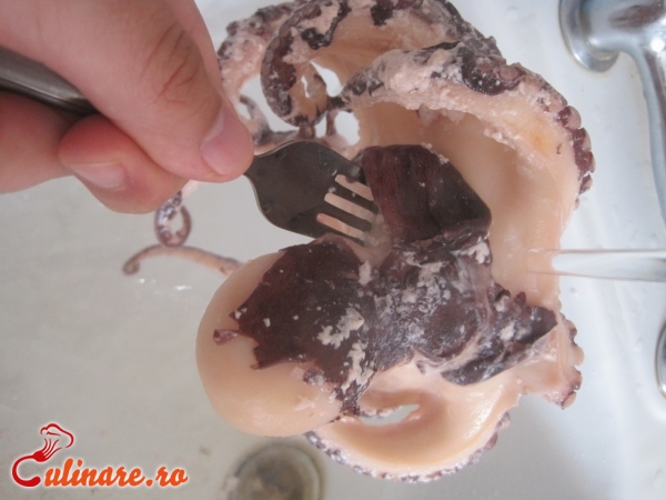 Se spala si se curata caracatita! Apoi, se pune la fiert in apa timp de 1 ora si jumatate (se schimba apa de 2 ori). In ... (mai mult)