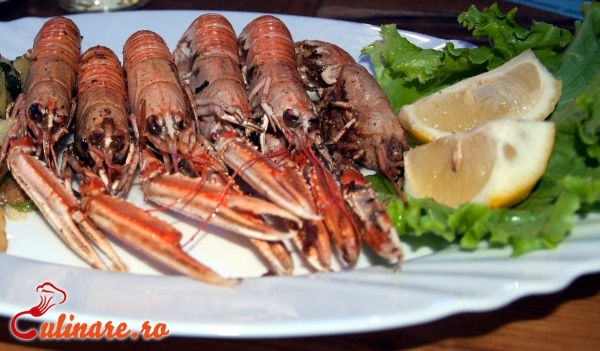Se incinge gratarul, timp in care amestecam intr-un bol, untul impreuna cu usturoiul pisat, uleiul de masline, ceapa tocata, boia, sare si piper. In acest amestec punem langustinele si le tinem timp de o jumatate de ora. Apoi se aseaza langustinele pe gratarul incins, pana ce capata o nuanta de roz.