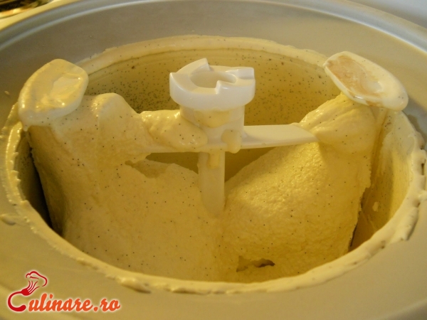 Zaharul, sarea si zaharul vanilat se amesteca cu frisca nebatuta, pana cand acesta se dizolva complet. Se toarna compozitia intr-un vas emailat mai adanc si se pune la frigider. Dupa ce crema incepe sa inghete se amesteca viguros de cateva ori la interval de 15 minute, iar dupa ce se intareste, se aranjeaza in cupe sau pahare. Inghetata se serveste cu frisca batuta sau se presara deasupra arahide prajite si tocate cu cutitul.