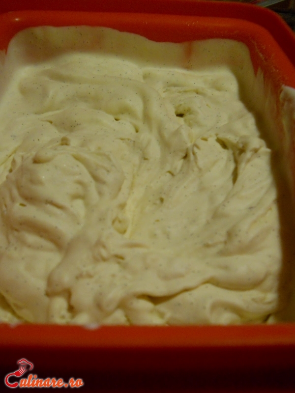 6 pahare frisca nebatuta 1 si 1/4 zahar pudra 3 pachetele zahar vanilat 1 varf de cutit sare