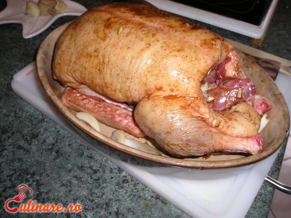 Mai intai se curata si se pregateste rata pentru gatit. Apoi se aseza intr-o tava, se unge cu unt si se rumeneste in ... (mai mult)