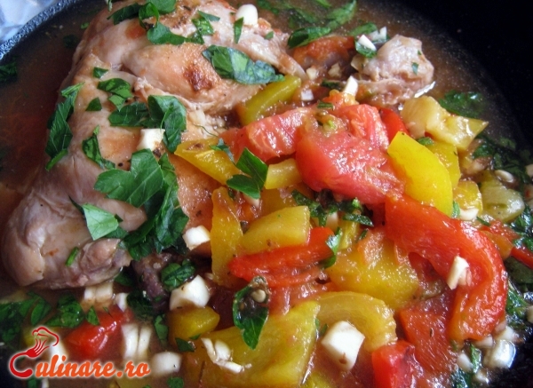 1 pui 1 plic de condimente pentru pui 2 catei de usturoi piper boabe 1 ardei iute 1 lingurita boia dulce 1 ardei capia 1 ceapa verde