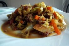 Mai intai se taie carnea in cubulete. Legumele se vor toca si ele, iar varza fasii subtiri. Se ia o cratita mai mare in ... (mai mult)