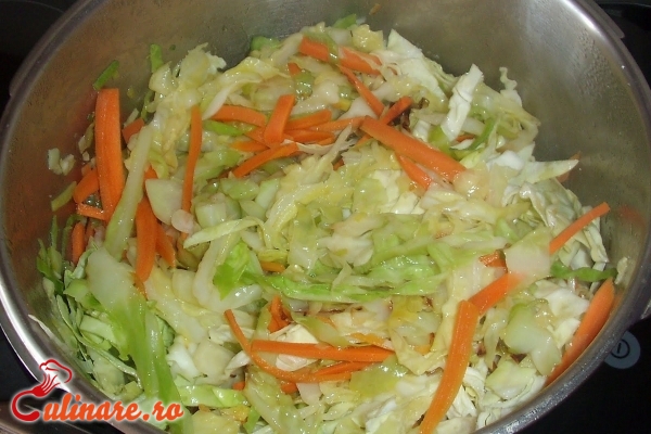 Varza alba se curata de cotoare, se stoarce bine de zeama si se taie in fasii lungi. Varza se inabusa in ulei. Se adauga... (mai mult)