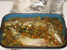 Fileurile de peste se spala, se scurg de apa si se aseza in tava. Peste ele presaram condimentele, turnam o jumatate de ... (mai mult)