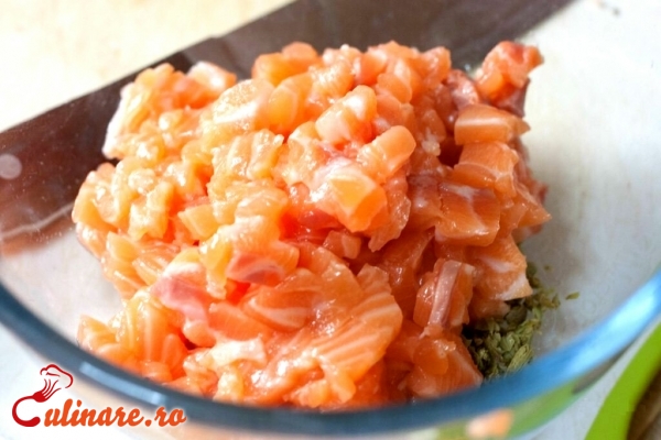 Se taie somonul in bucati mici si se pun intr-un castron. Apoi, se taie branza de capra, se pune peste somon impreuna cu... (mai mult)