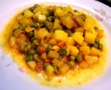 Se caleste ceapa tocata, peste care se adauga si mazarea, se toarna un pahar de apa si se lasa la fiert. Cand mazarea a ... (mai mult)
