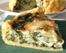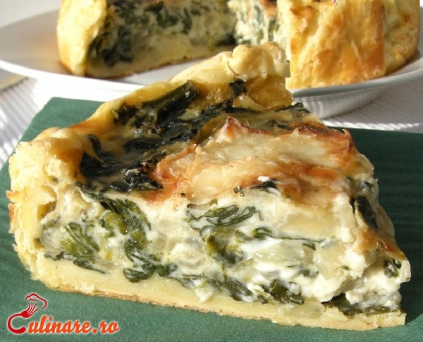 un pachet de aluat de foi un buchet de spanac ceapa branza 200 ml smantana 2 oua ulei de masline unt nucsoara sare piper