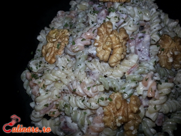 Se prepara pastele intr-o oala cu apa fiarta. Se vor fierbe cam 15 minute, dupa care se dau prin jet de apa rece, si se lasa la scurs. Pastele se pun intr-un bol, se va adauga margarina peste ele, zaharul, esente de rom si nuca macinata, se amesteca totul si sunt gata de a fi servite.