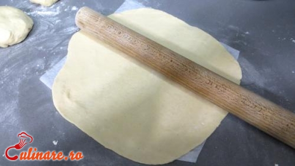 Aluatul se imparte in 10 portii. Ciupercile se scurg, se trec prin jet de apa rece si se taie lame. Salamul se curata de... (mai mult)