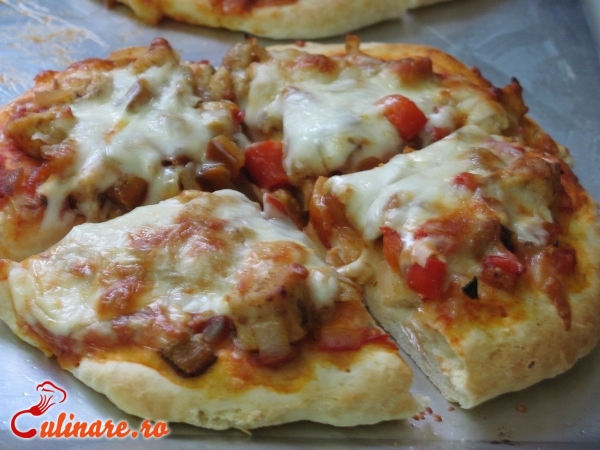 Aluatul se imparte in 10 portii. Mozzarella se rade. Sunca, baconul si pieptul de pui se taie fasii sau cubulete. ... (mai mult)