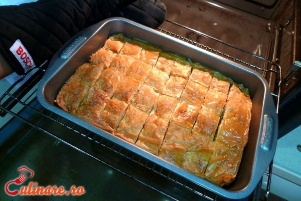 Foile de placinta se intind intr-o tava tapetata cu unt. Astfel prima foaie de placinta se va unge cu putin unt topit, ... (mai mult)