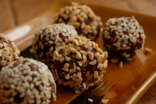 Intr-o cratita, se caramelizeaza zaharul, iar cand acesta devine lichid se adauga untul, amestecand bine, pana ce se vor topi impreuna. Peste caramel se toarna laptele si cacao si se omgenizeaza amestecul, apoi se da de pe foc. Biscuitii se sfarama cu sucitorul, in bucatele mici si se pun si ei impreuna cu amestecul de zahar caramelizat si cacao. Din acest amestec va rezulta o compozitie legata, din care se vor forma cu ajutorul mainilor, mici bilute de dimensiuni egale, ce vor fi umplute cu visine din dulceata, apoi date prin migdalele macinate. Inainte de a fi servite este recomandat a fi tinute la frigider, cel putin 2 ore.