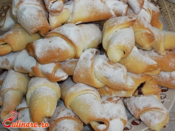 Se amesteca faina cernuta, impreuna cu untul, untura, o lingura de sare si 2 oua, se adauga laptele, drojdia si smantana... (mai mult)