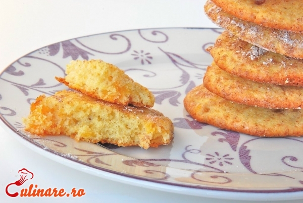 Se incalzeste cuptorul la 175 de grade. Intre timp, se amesteca faina cu putin praf de copt. Se inmoaie untul si se amesteca cu zaharul, apoi se adauga oul si esenta de vanilie. Se amesteca cu faina si se adauga gemul de caise. Se formeaza bile turtite si se pun in tava. Peste acestea se presara zahar pudra cu scortisoara si se lasa in cuptor timp de 12-15 minute.