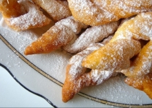 Vom realiza un aluat din amestecul tuturor ingredientelor, framantam bine, pana obtinem un alut pufos. Din aluatul nostru vom intinde o foaie cat mai mare si mai subtire. Din acesta,vom decupa fasii pe care le vom modela in forma de minciunele. Incingem ulei intr-o tigaie mai adanca si rumenim minciunelele. Cand le scoatem din ulei, le asezam pe un platou si le pudram cu zahar vanilat. Sunt delicioase atat calde, dar si reci.
