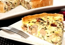Ceapa se taie marunt si se caleste in ulei. Se toaca si ciupercile si se adauga si ele peste ceapa. Se lasa pe foc pana cand ciupercile se innabusa. Ouale se bat cu smantana, pesmet si cascaval si se adauga in vasul cu ciuperci si ceapa. Se condimenteaza cu piper si sare si se amesteca. Compozitia se toarna intr-o tava inalta si se da la cuptorul incins timp de jumatate de ora. Cand e gata se portioneaza si se serveste calda.