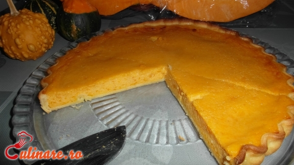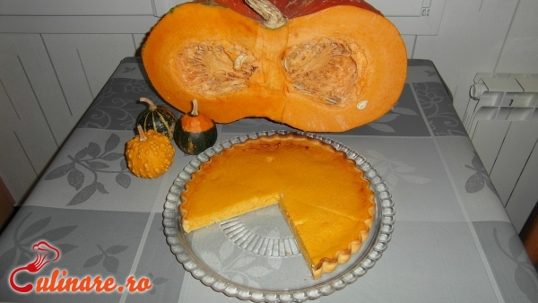 Se pune la fiert dovleacul. Cand este gata, se lasa sa se raceasca si se paseaza. Apoi, se aduaga ouale, zaharul scortisoara si esenta de vanilie. Dupa ce se amesteca bine, se aduaga si laptele. Se coace foaia de placinta la cuptor, la o temperatura de 200 de grade. Cand este gata, se introduce crema obtinuta la mijloc si se mai coace putin.
