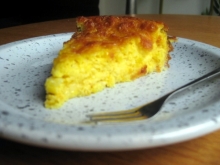 Se amesteca malaiul cu laptele. Se bat ouale si se amesteca cu untul si zaharul. Apoi, se adauga praful de copt. Se amesteca ouale cu malaiul incorporat in lapte si se adauga branza. Se unge o tava cu unt si se tapeteaza cu faina. Se pune aluatul si se baga la cuptorul incins la 175 de grade, timp de 60-70 de minute, pana cand se rumeneste!