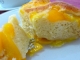 60 ml sirop de piersici 1 cutie de piersici din compot 3 oua 170 g faina 5 linguri ulei de masline 6 linguri zahar coaja rasa de la o portocala