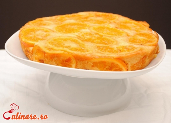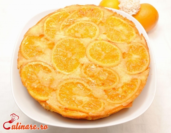 Se pune la incalzit cuptorul la o temperatura de 200 de grade. Se cerne faina cu praful de copt. Intr-un castron, se pune untul cu zaharul si se bat bine. Apoi, se adauga sucul de portocale si faina. Se bat cu mixerul. Se pune si coaja de portocala si se amesteca. Se bat albusurile pana devin spuma si se adauga la compozitia anterioara! Se toarna preparatul in tava si se coace la cuptor timp de 30-40 de minute. Cand este gata, se stinge focul si se lasa la racit. Se orneaza cu gem de portocale si felii de portocale!