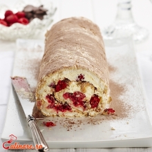 Celor 4 oua li se separa albusurile de galbenusuri si se pun in boluri separate. Galbenusurile se bat impreuna cu zaharul si esenta de vanilie, pana cand devin o crema fina. Separat, albusurile se bat spuma cu un praf de sare, apoi se adauga peste crema de galbenusuri, amestecand usor. Urmeaza sa se adauge faina si praful de copt, se amesteca incet, pana cand se incorporeaza totul, apoi se toarna compozitia obtinuta, intr-o tava tapetata cu hartie de copt si se da la cuptor, pentru 25 de minute. Intre timp se amesteca mascarpone impreuna cu zaharul si putina coaja de lamaie si se tine la rece, cat timp de coace blatul. Cand acesta s-a rumenit cat trebuie, se scoate din cuptor si se aseaza pe o folie de plastic. Peste blatul inca fierbinte, se intinde crema de mascarpone, se aseaza zmeura pe toata suprafata blatului, apoi se ruleaza usor, se strange bine folia, la capate si se lasa asa, pentru cateva minute, apoi se indeparteaza folia si se pudreaza cu zahar si se orneaza rulada cu zmeura.
