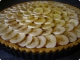 Faina se cerne si masoara dupa care se pune in castron. Fara sa se atinga cu mana, grasimea se incorporeaza cu cutitul, dupa care se apasa cu furculita pana cand compozitia are forma unor firimituri mari de paine. In apa rece este dizolvata sarea si se amesteca cu furculita in sens circular in compozitie. Mai putem adauga 2-3 lingurite de apa, doar daca este necesar. Aluatul trebuie facut sa ia forma unei mingi, fara sa se mai framante, se inveleste intr-un servet si se da la rece. Din compozitia trebuie sa rezulte 2 foi cu care se imbraca forma si se acopera tarta. Se intinde o foaie rotunda si groasa de circa 4 mm, se imbraca forma de tarta si se coace in cuptorul fierbinte 10-15 minute, pana devine rumena. Zaharul se amesteca cu amidonul si sarea intr-un vas potrivit. Se incorporeaza laptele si galbenusurile. Se fierbe compozitia la foc domol amestecand fara intrerupere pana cand da in clocot. Dupa ce fierbe un minut, se da vasul deoparte, se adauga untul si vanilia, apoi se lasa sa se racoreaca. Fructele, bine coapte, se curata de coaja, se taie felioare subtiri si se aranjaza pe foaia de tarta. deasupra se toarna compozitia fiarta, racita. Tarta se da la frigider 1-2 ore. Inainte de a se servi, se orneaza cu frisca batuta.