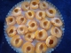 400 g faina 300 g caise 200 g unt 200 ml lapte 5 ml vanilie 40 g fulgi de migdale 3 oua