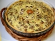 350 g faina 200 g unt 500 g ciuperci 200 g cascaval 300 ml smantana 2 ceape mari 4 oua patrunjel sare piper