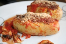 Cartofii se pun intr-o tava si se coc. Cand sunt gata, se scot din cuptor, se taie in jumatati si se scobesc, formand ... (mai mult)
