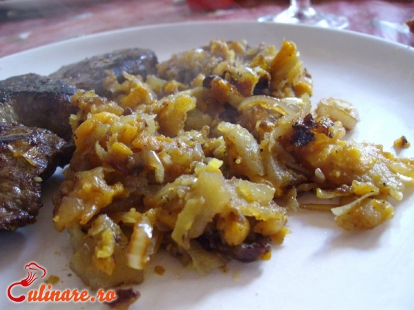 Ficatul se spala si se portioneaza. Ceapa se curata si se taie felii. Cartofii se curata, se spala, se taie cuburi si se... (mai mult)