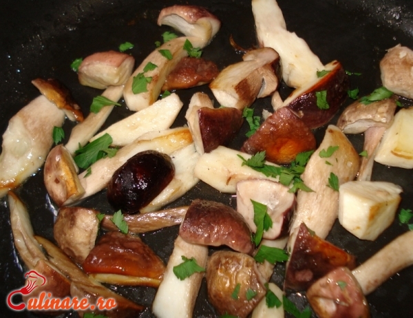 Ciupercile se toaca in cubulete si se pun la calit, se condimenteaza si se lasa la foc mic, pana cand scade zeama lasata... (mai mult)