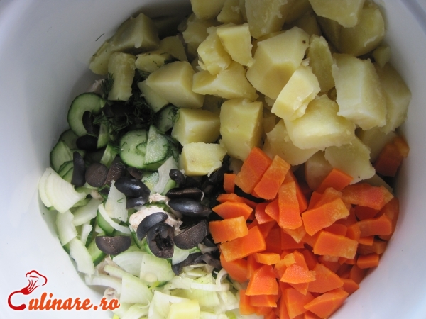 Pentru a prepara salata, trebuie sa fierbem mai intai cartofii, care au fost curatati si taiati in cuburi, in prealabil.... (mai mult)