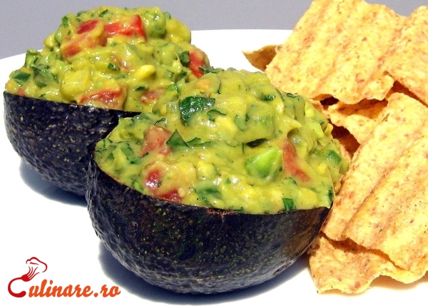 5 avocado 1 ceapa rosie 2 linguri suc de lamaie 1 ardei 1 catel de usturoi sareĀ tortilla chips-uri