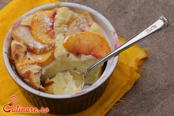 Piersicile macerate in coniac se taie bucatele si se trec prin sita. Piureul obtinut se amesteca cu zaharul, galbenusurile, coaja rasa de lamaie si romul. Aceasta crema se amesteca cu spuma de albus, se pune intr-o forma unsa si se coace la cuptor la foc domol. Se pudreaza cu zahar vanilat. Reteta de sufleu de piersici se mai poate prepara si cu compot de piersici.