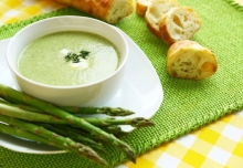 500 g sparanghel 2 l apa 2 cepe 200 ml lapte faina 100 g unt 2 oua patrunjel smantana sare