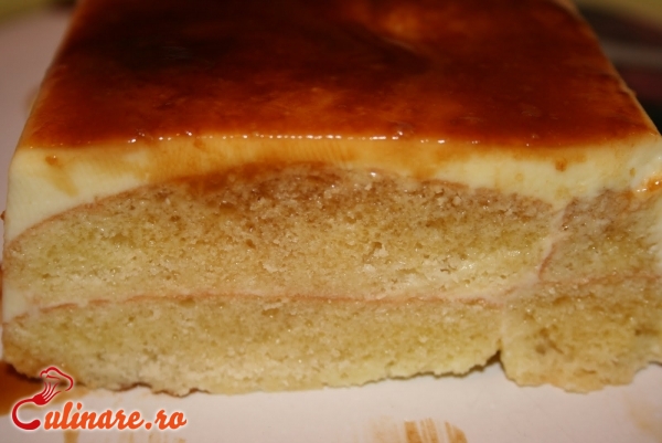 Mai intai, se caramelizeaza cele 5 linguri de zahar intr-o cratita destul de adanca, in care va merge tortul la cuptor. Se pregateste forma de tort, taptand-o cu 6 linguri de zahar ce a fost caramelizat. Albusurile se bat spuma cu zahar si un praf de sare, peste ele se toarna si galbenusurile si 4 linguri de faina amestecand usor, pentru a incorpora totul. Blatul obtinut se aseza in tava de tort. Crema o preparam mixand usor toate ingredientele, apoi se toarna desupra blatului, iar cand patrunde crema pe langa peretii formei, blatul se va ridica usor, deasupra cremei. Forma de tort o vom aseza intr-o tava adanca in care punem apa si o dam la cuptor pentru 50 de minute. Cand baltul s-a rumeni deasupra, se acopera forma cu o farfurie intinsa mai mare si se rastoarna tortul, dar fara a-l scoate din forma. Il lasam sa se raceasca, apoi il dam la frigider pentru 4 ore. Cand s-a racit, ridicam forma si tortul poate fi servit.